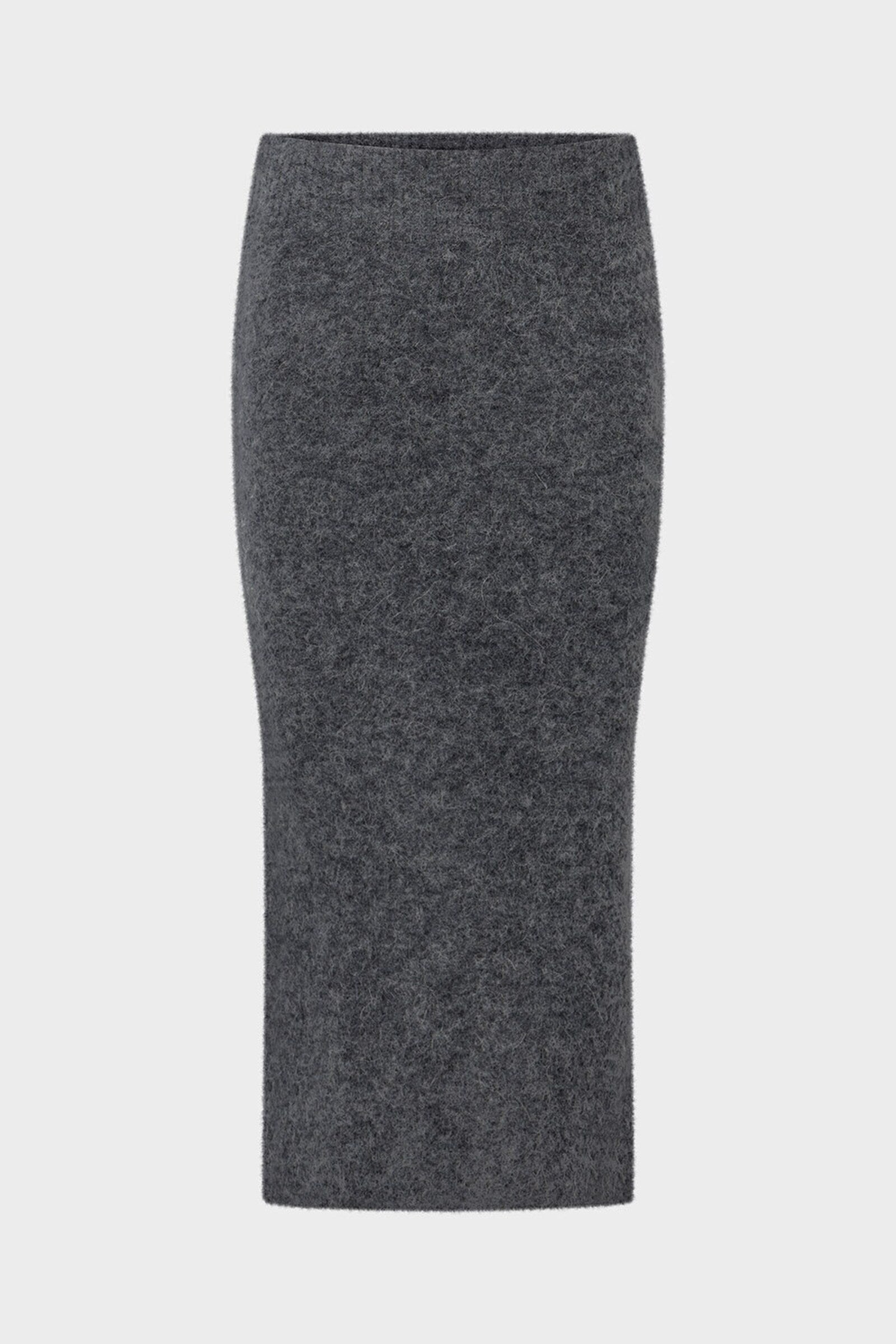 Introducing the Lidya Skirt in Blackish Melange, a chic and versatile piece crafted from a superfine alpaca blend for exceptional softness and warmth. This flattering midi-length skirt features a ribbed elastic waistband for a comfortable and secure fit. With its subtle texture and refined silhouette, the Lidya Skirt effortlessly transitions from day to night. Pair it with our Remi Sweater and Bonn Boots for a complete, sophisticated look, perfect for cooler days or a stylish evening out.