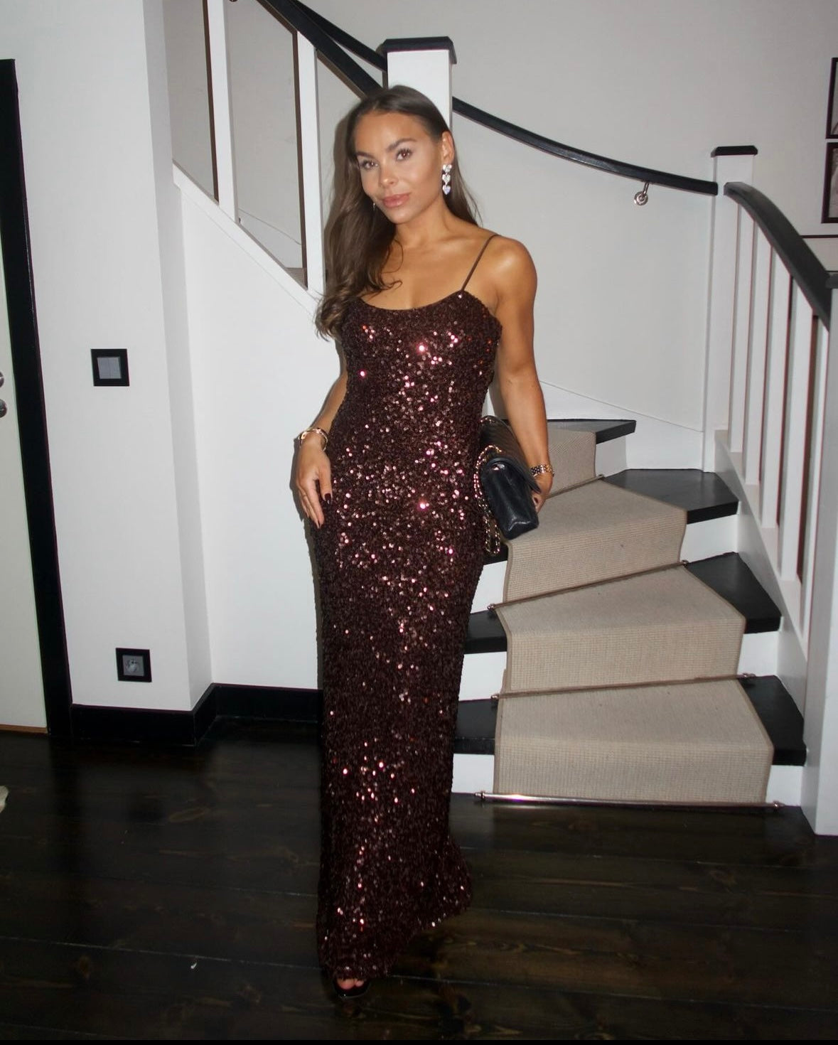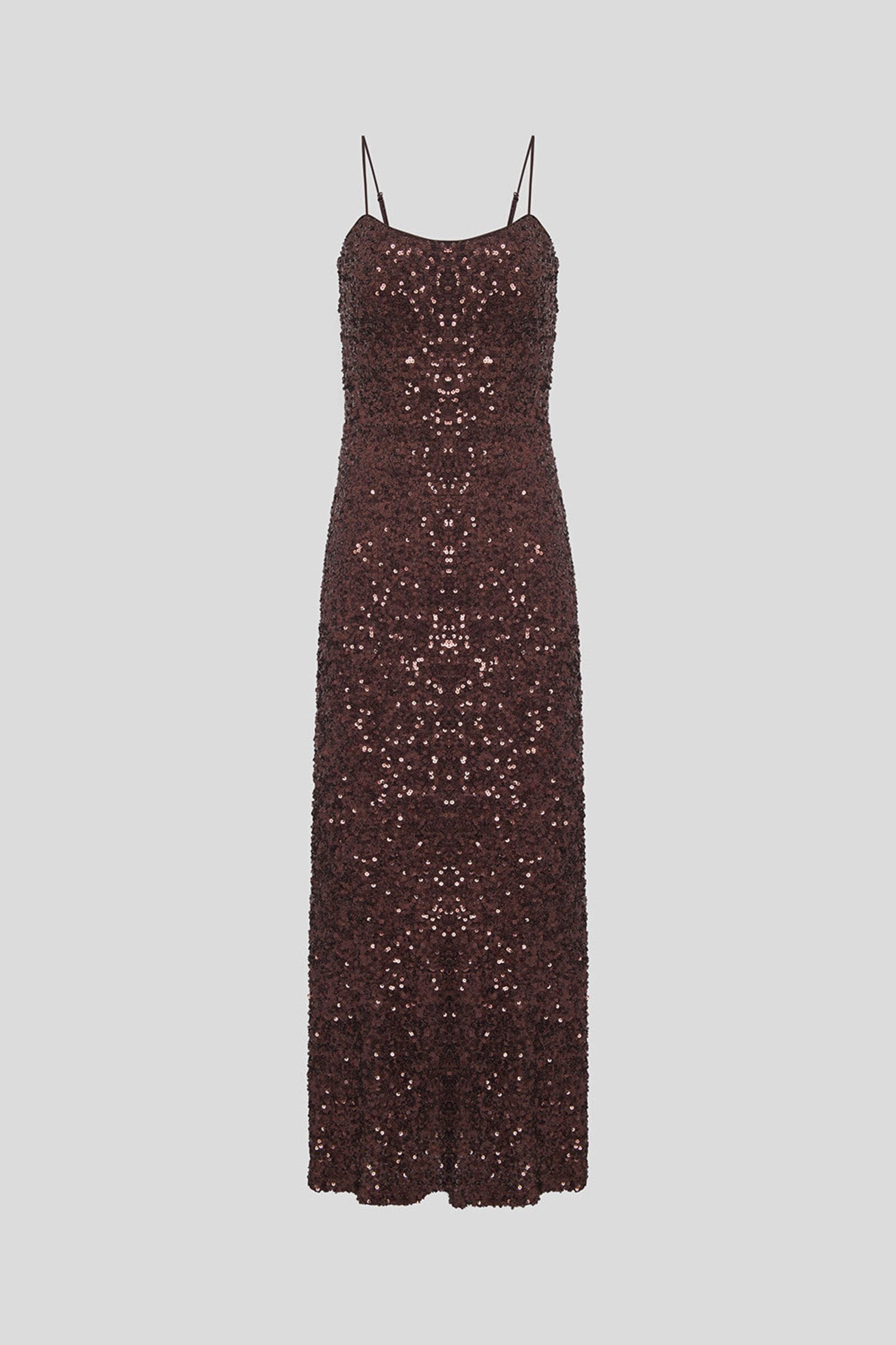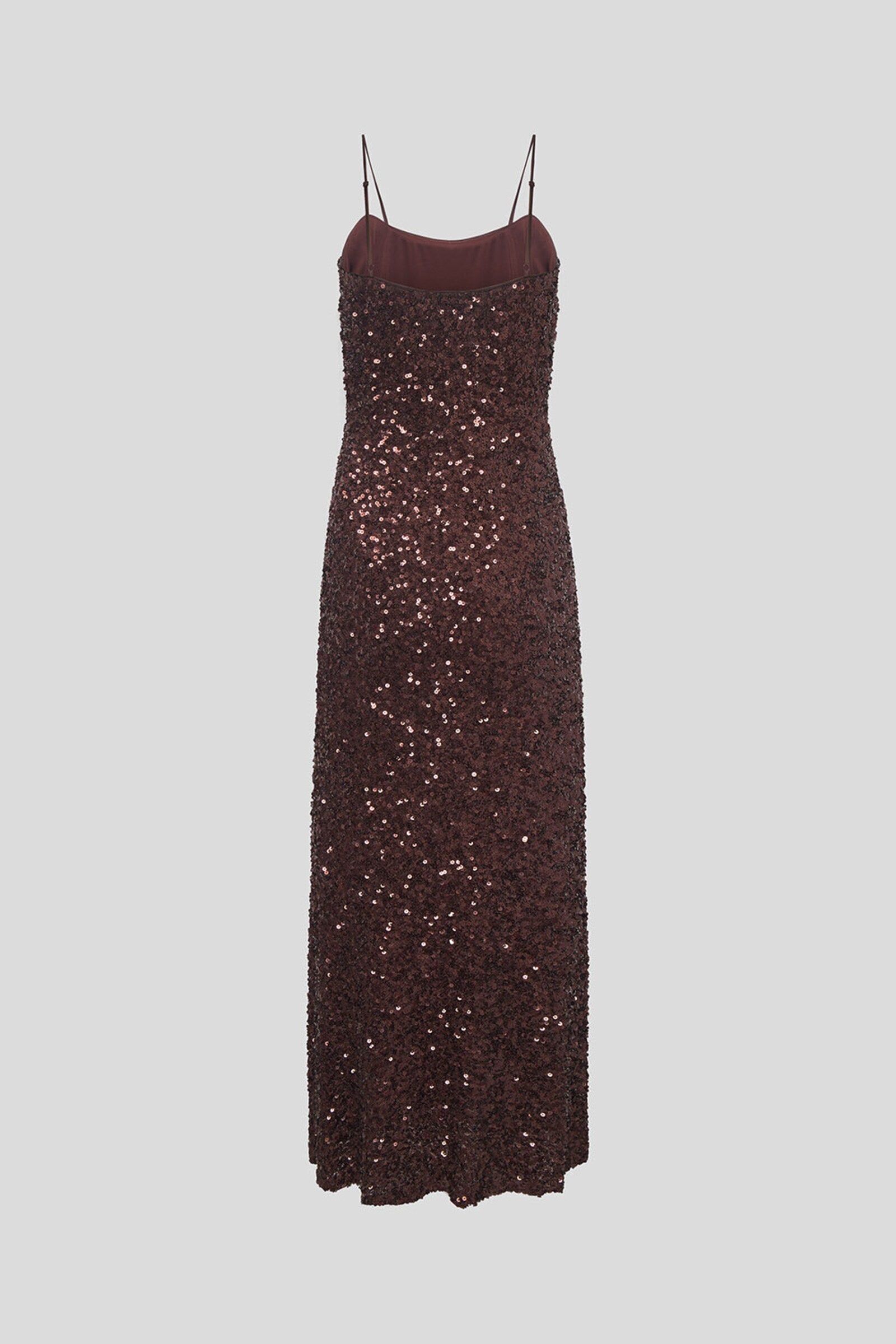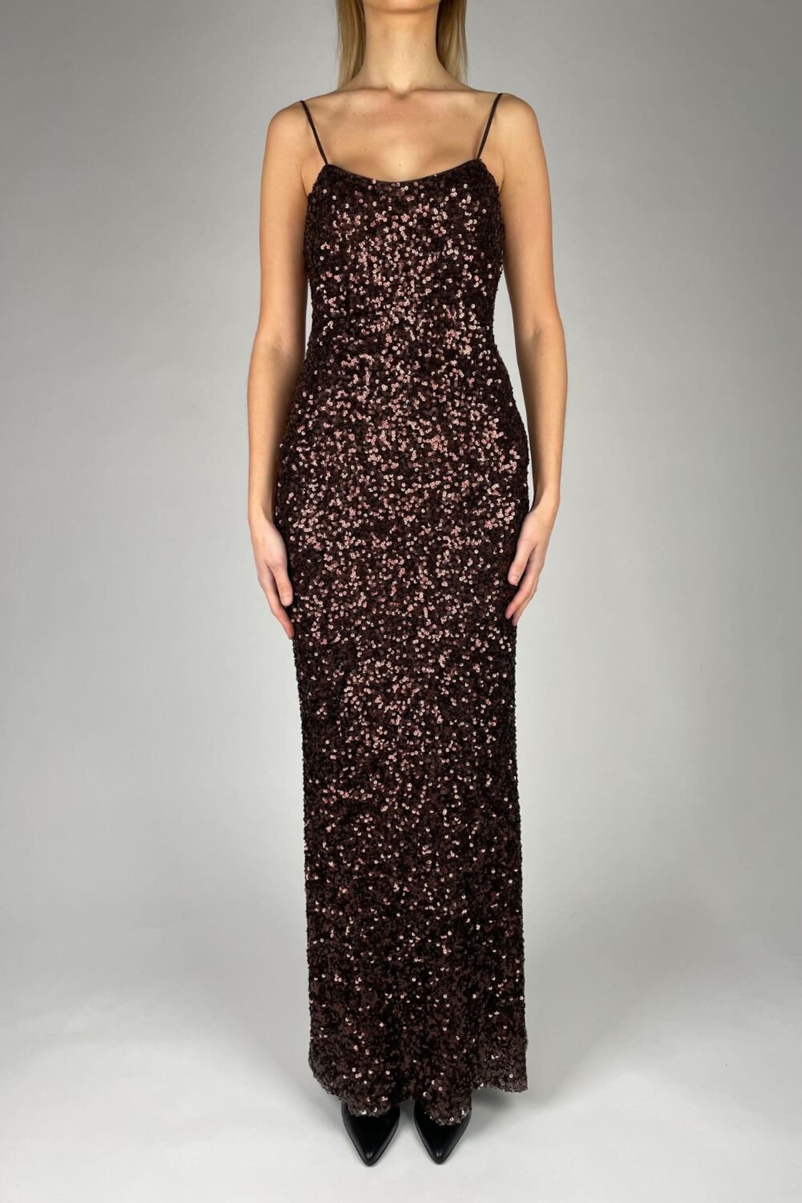 Make a statement at any event with the Gertrude Sequin Maxi Dress in Rich Brown. This glamorous dress is adorned with shimmering sequins that catch the light beautifully, ensuring you’ll turn heads all night. Designed in a flattering maxi length, it features adjustable shoulder straps for a perfect fit and a hidden side zip for a seamless look. Elegant yet bold, the Gertrude Sequin Maxi Dress is the ultimate choice for special occasions where you want to shine.