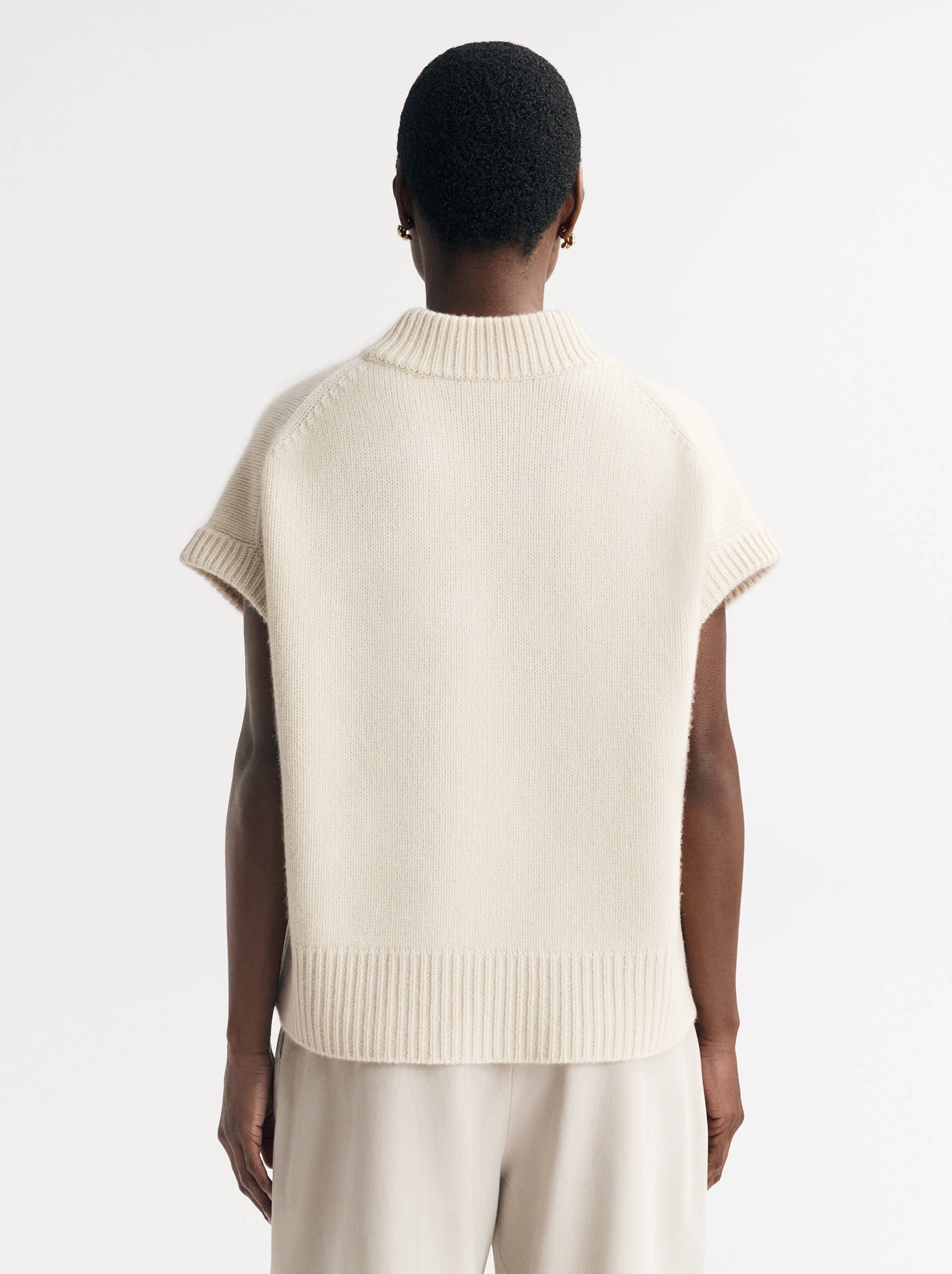 Introducing the Round Neck Top in Feather White, a luxurious and timeless piece crafted from 100% cashmere for an incredibly soft, cozy feel. This short-sleeve chunky knit top features a classic round neckline, offering effortless elegance and versatility. The rich texture of the cashmere adds warmth and sophistication, making it perfect for layering or wearing on its own. Ideal for both casual and polished looks, the Round Neck Top is a must-have addition to your wardrobe, offering comfort and style for any occasion.