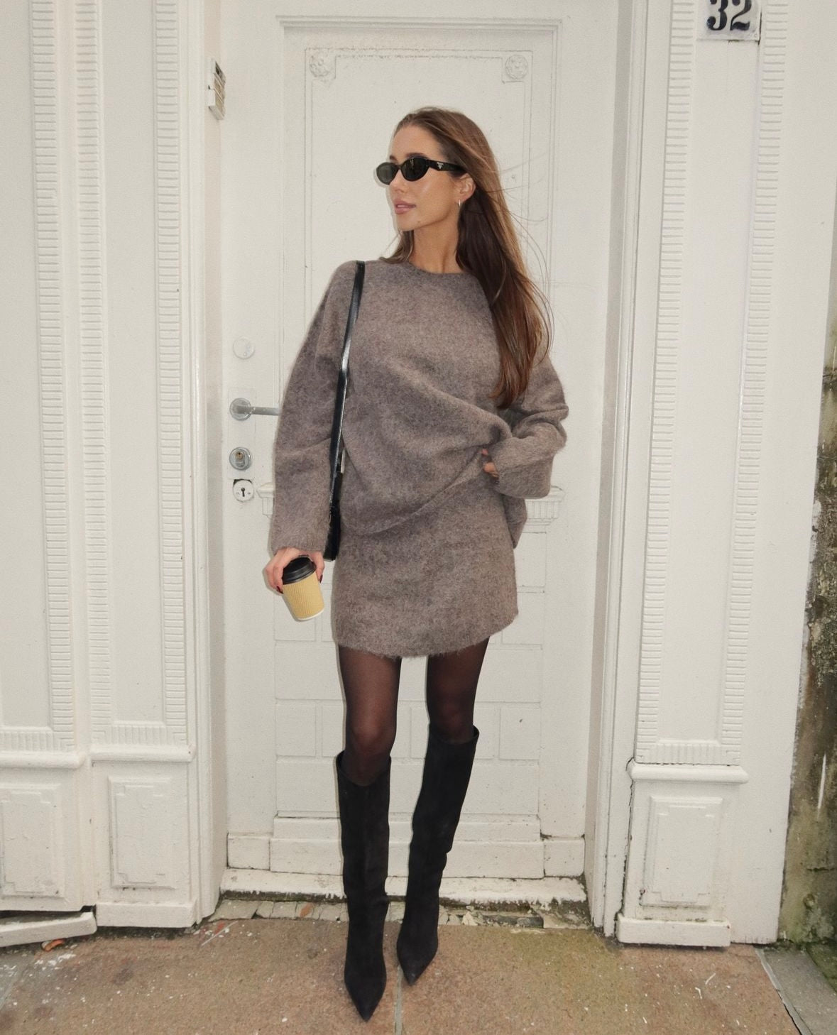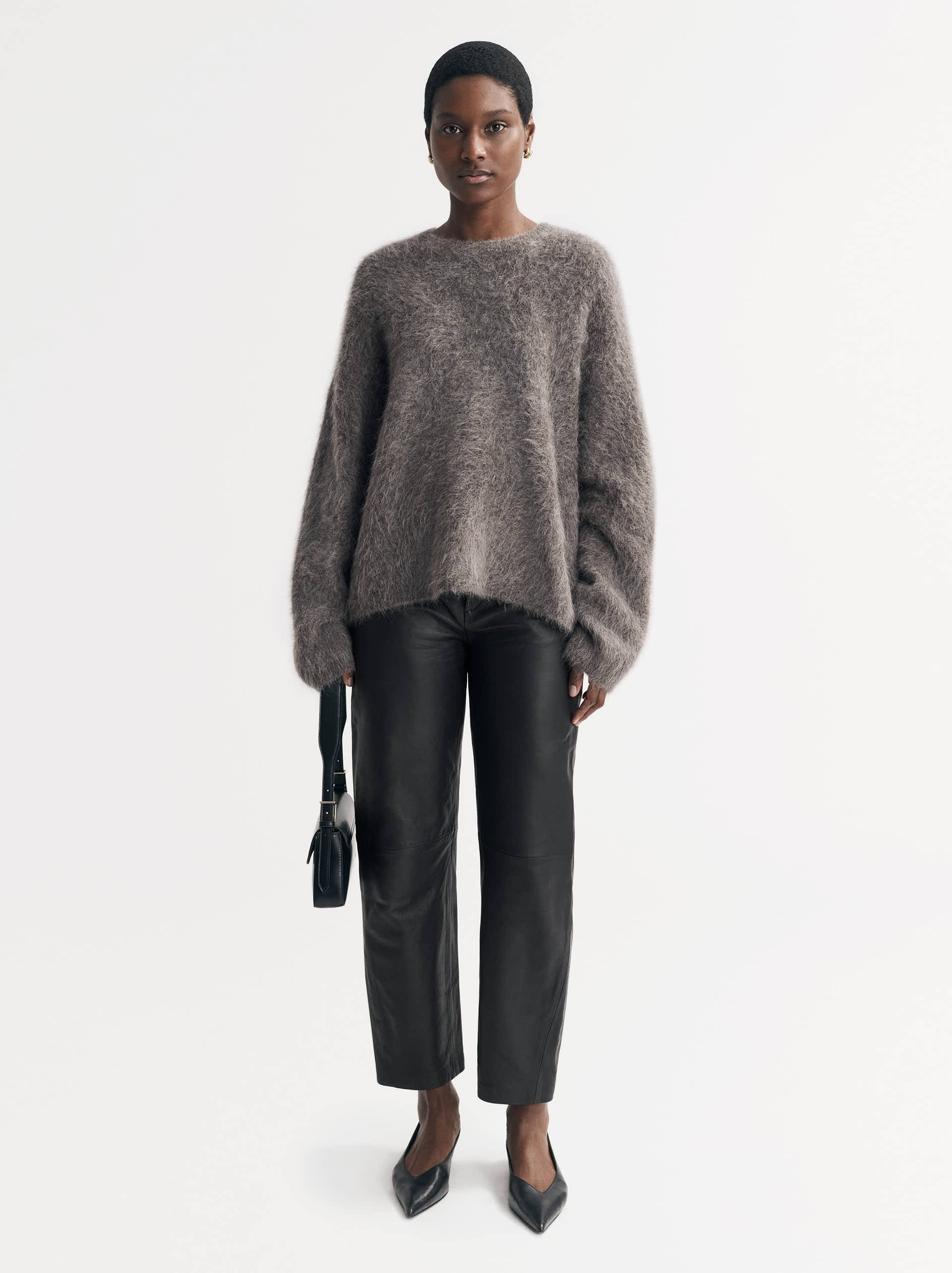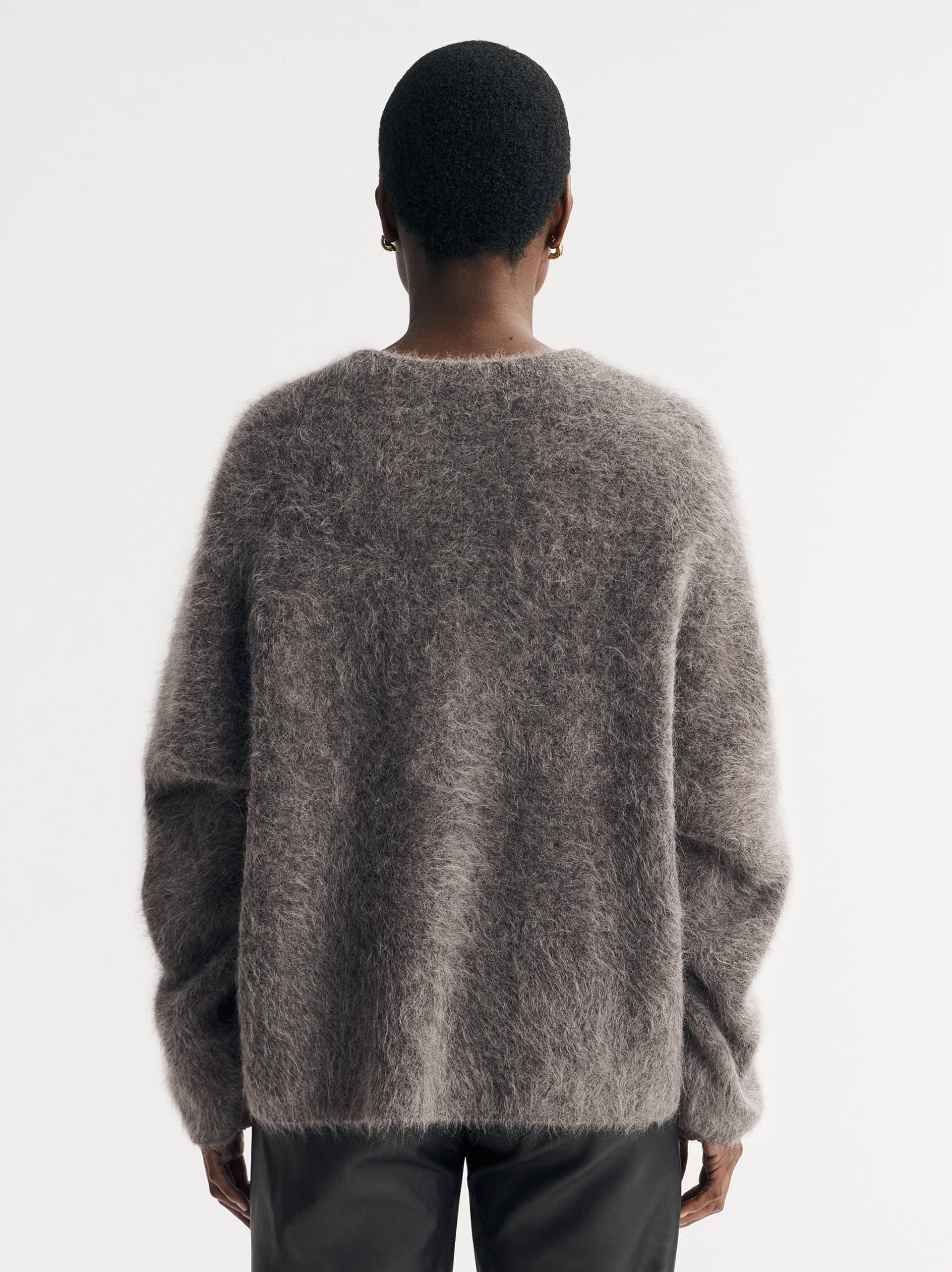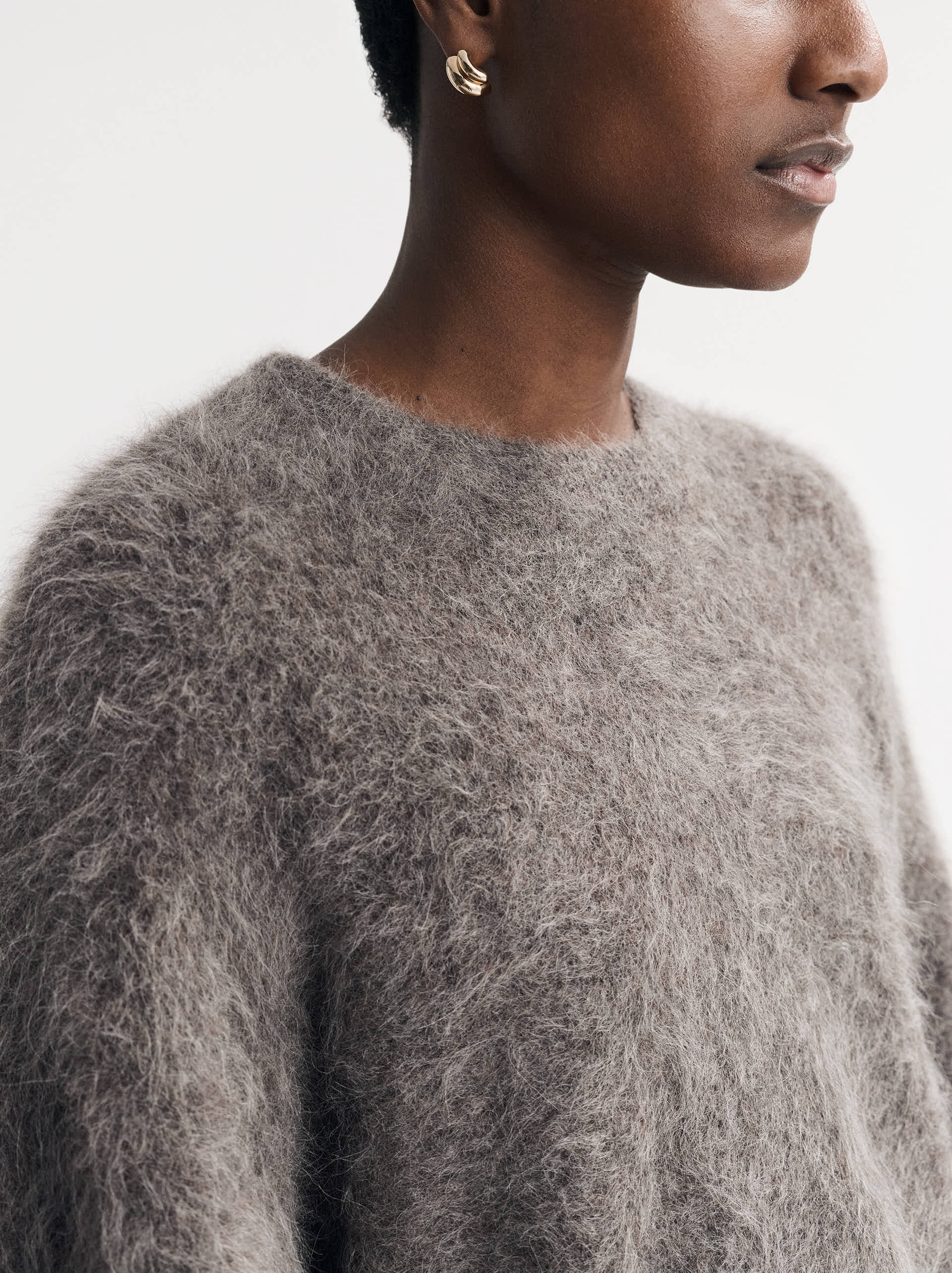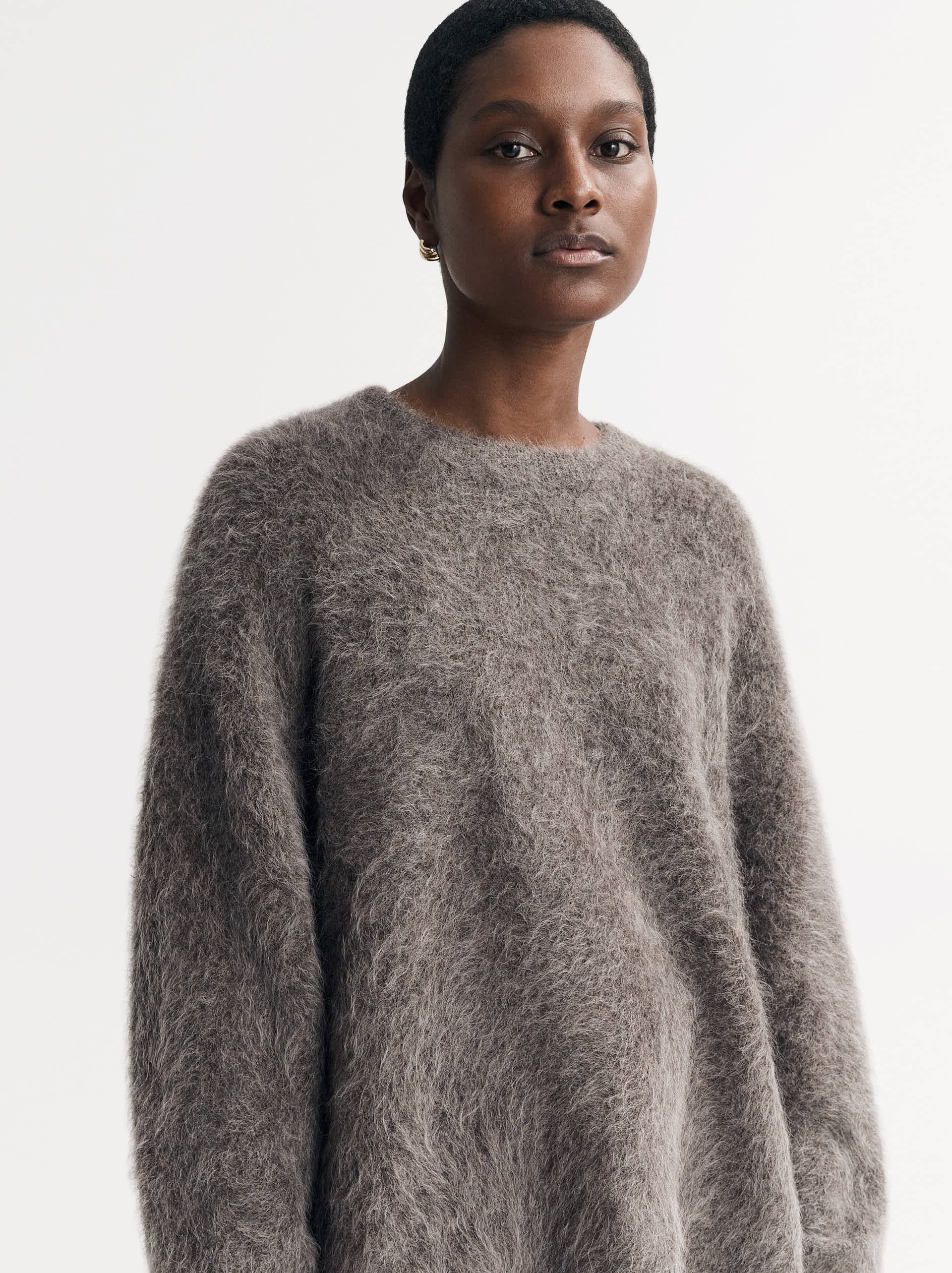 Embrace cozy sophistication with the Alpaca Crewneck Sweater in Wood, crafted from a premium alpaca blend. This brushed knit sweater combines Scandinavian minimalism with warmth and comfort, making it an ideal choice for cool-weather styling. Featuring a classic crew neckline and a relaxed fit, the Alpaca Crewneck is perfect for layering or wearing on its own. The soft, natural texture and earthy wood color bring timeless elegance to any outfit, ideal for women seeking high-quality, sustainable knitwear with a modern edge.