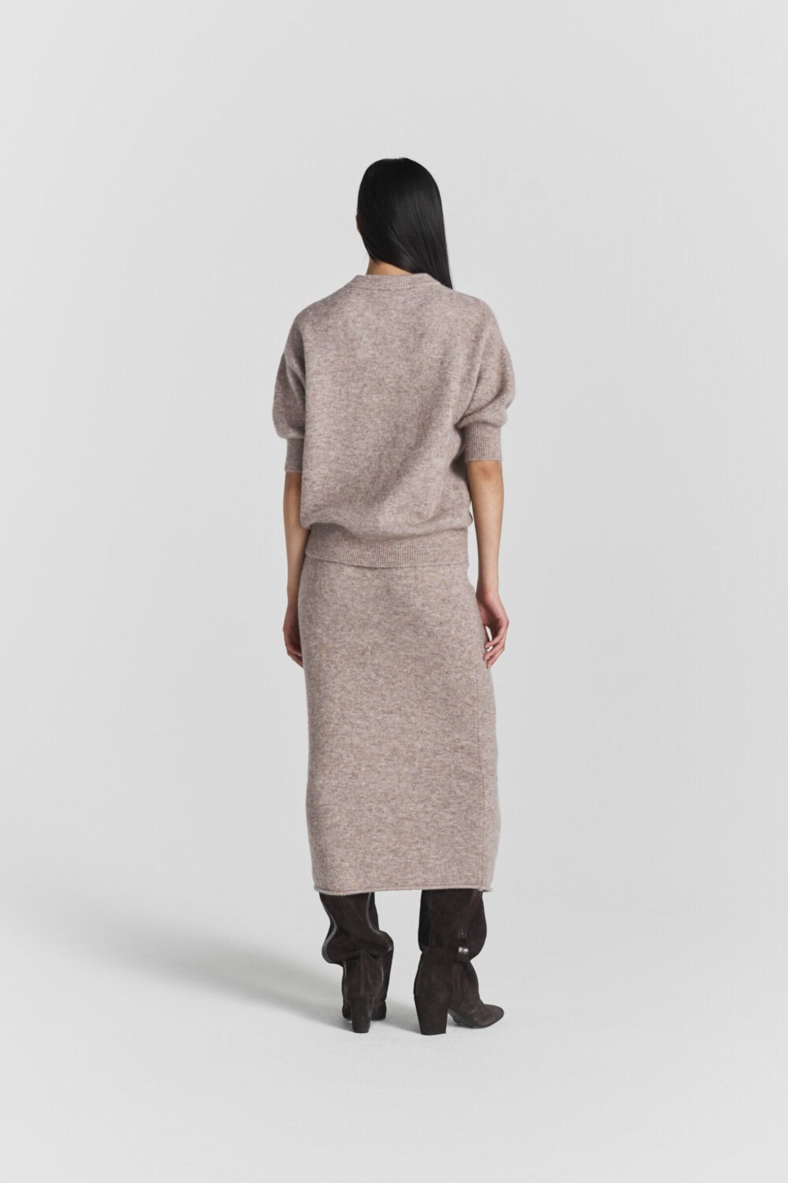 Introducing the Remi Sweater in Hazelnut, a luxurious and cozy essential crafted from a premium blend of alpaca and merino wool. This sweater features puff sleeves with ribbed cuffs, adding a touch of elegance and volume, while the dropped shoulders create a relaxed, effortless silhouette. The rounded neckline completes the refined yet comfortable design. Perfect for layering over the Lidya Skirt or pairing with your favorite jeans, the Remi Sweater offers both warmth and sophisticated style, making it a must-have addition to your wardrobe this season.